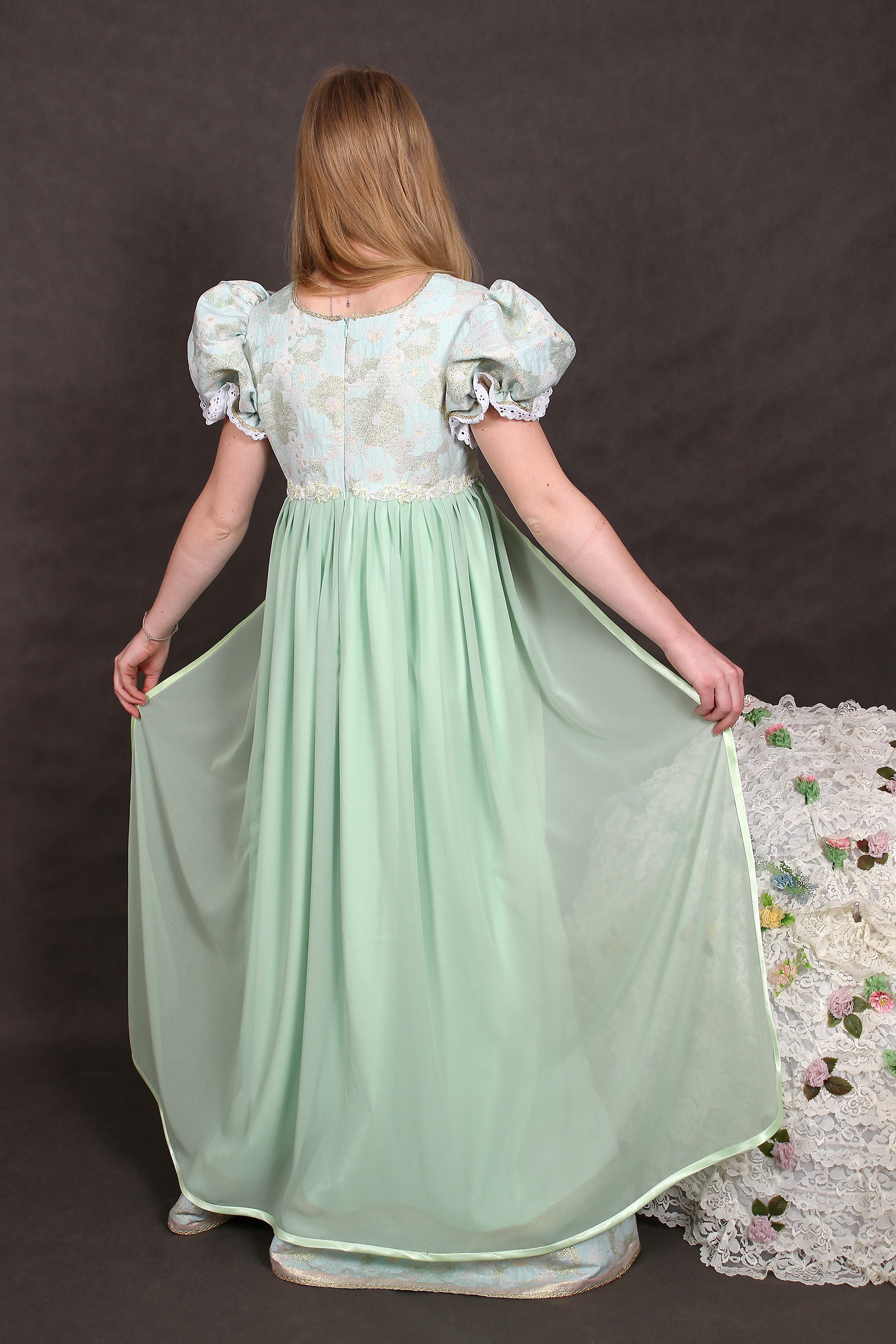 Suknia uszyta na wzór sukni, tunik antycznych z czasów napoleońskich lub filmu Bridgestone.