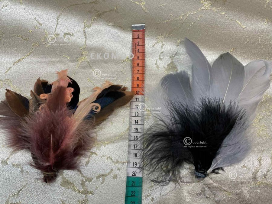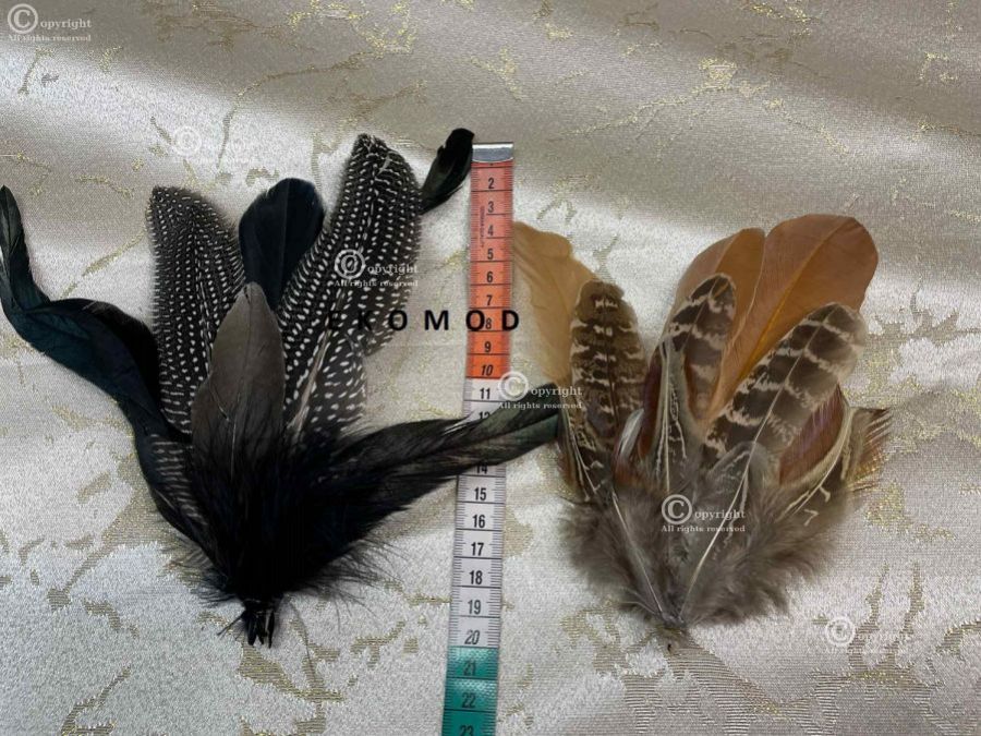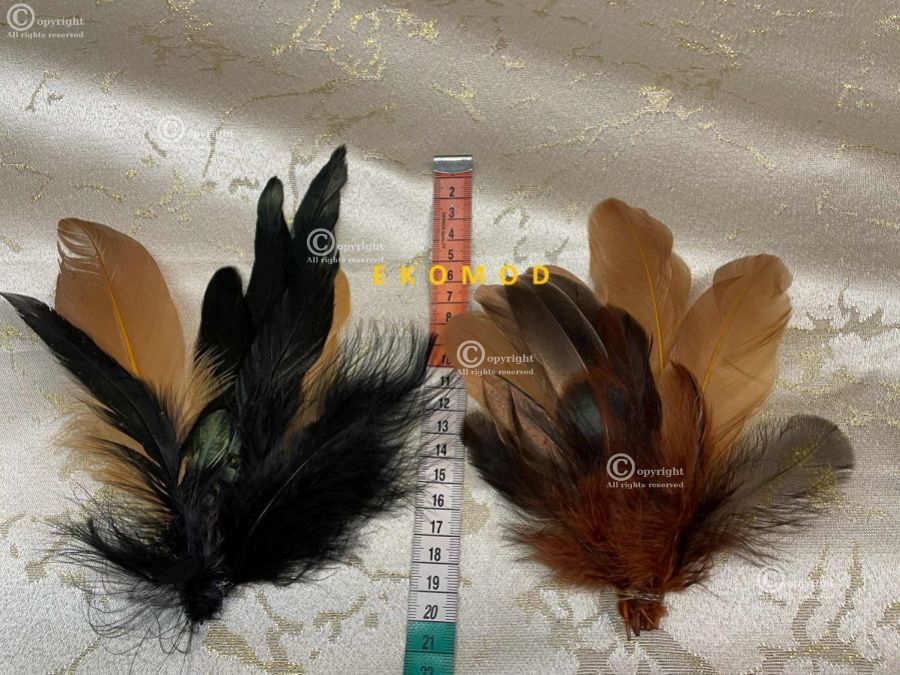 Piór jest kilka lub kilkanaście, są sklejone na gorąco razem tak żeby można było bez problemu je połączyć z broszką.