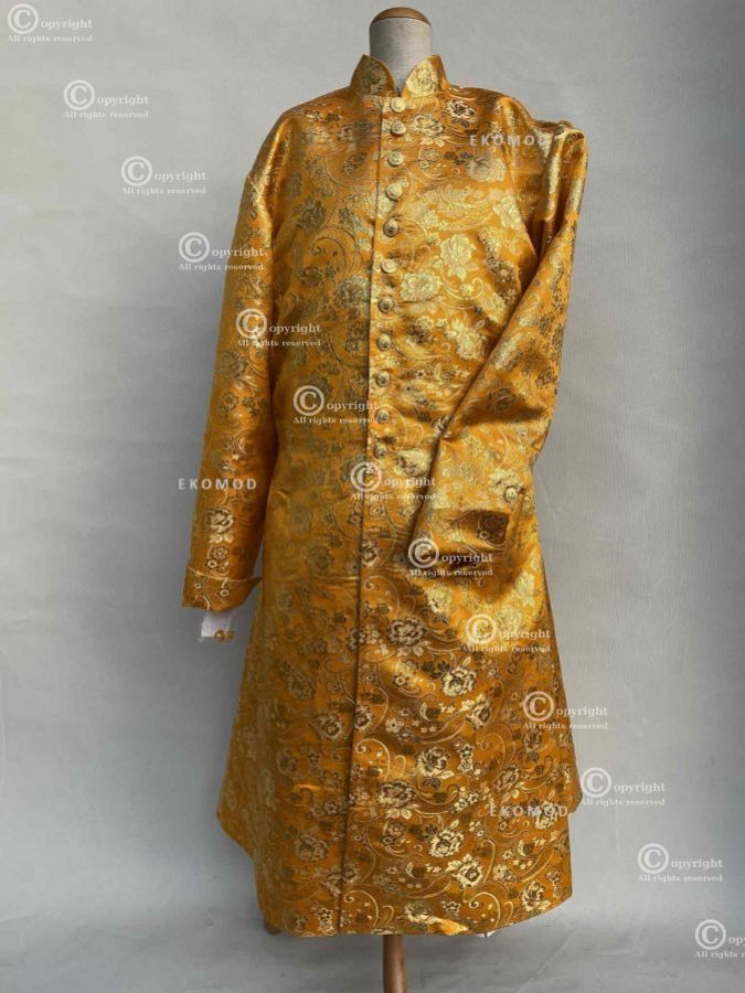 Żupan uszyty z materiału wzorzystego typu żakardu, na podszewce wiskozowej. Tył i boki lekko rozkloszowane, dobrze układa się na koniu.